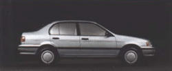 | Commentaires: La Toyota Tercel 1991-94 est une petite voiture économique d'utilisation. Il s'agit d'un excellent compromis urbain et autoroutier. L'aménagement intérieur est simple et les options offertes contre supplément étaient limitées (boîte automatique, climatiseur, système de son...). Ce modèle représentait pour Toyota la base de leurs modèles, donc il était offert à bas prix avec peu de luxe. Malgré tout, la présentation était de qualité. Les pneumatiques sont chétifs et l'allure du véhicule est discutable. L'insonorisation mériterait d'être améliorée. En 1994, Toyota a revampé l'allure de la carrosserie afin de donner un peu plus de personnalité à ce modèle. Enfin, la Tercel est un mode de transport banal car il regroupe l'espace d'une quatre places (berline), la fiabilité Toyota, l'économie d'un quatre cylindres. Mais du même coup, on ne peut s'enthousiasmer lors de la conduite. |